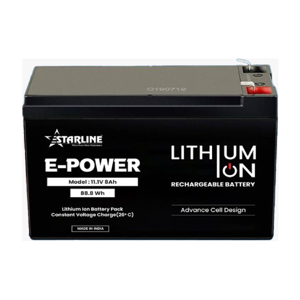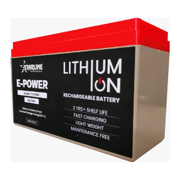 The Estarline E-Power Lithium-Ion Battery Pack is a high-performance, long-lasting energy solution designed for reliable power backup and portability. Built with advanced lithium-ion technology, it offers fast charging, lightweight design, and maintenance-free operation, making it ideal for various applications including solar systems, backup devices, and portable electronics.
